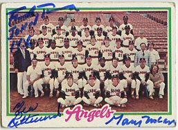 He added a bible verse, like Tanana did. I've never seen him do this before. Frank Tanana does it on every card, even team cards, like these 1975 and 1978 Angels team cards he signed for me last year.
